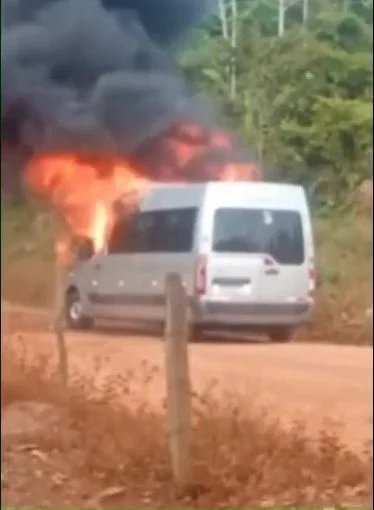Van pega fogo em estrada entre Viana e Pedro do Rosário