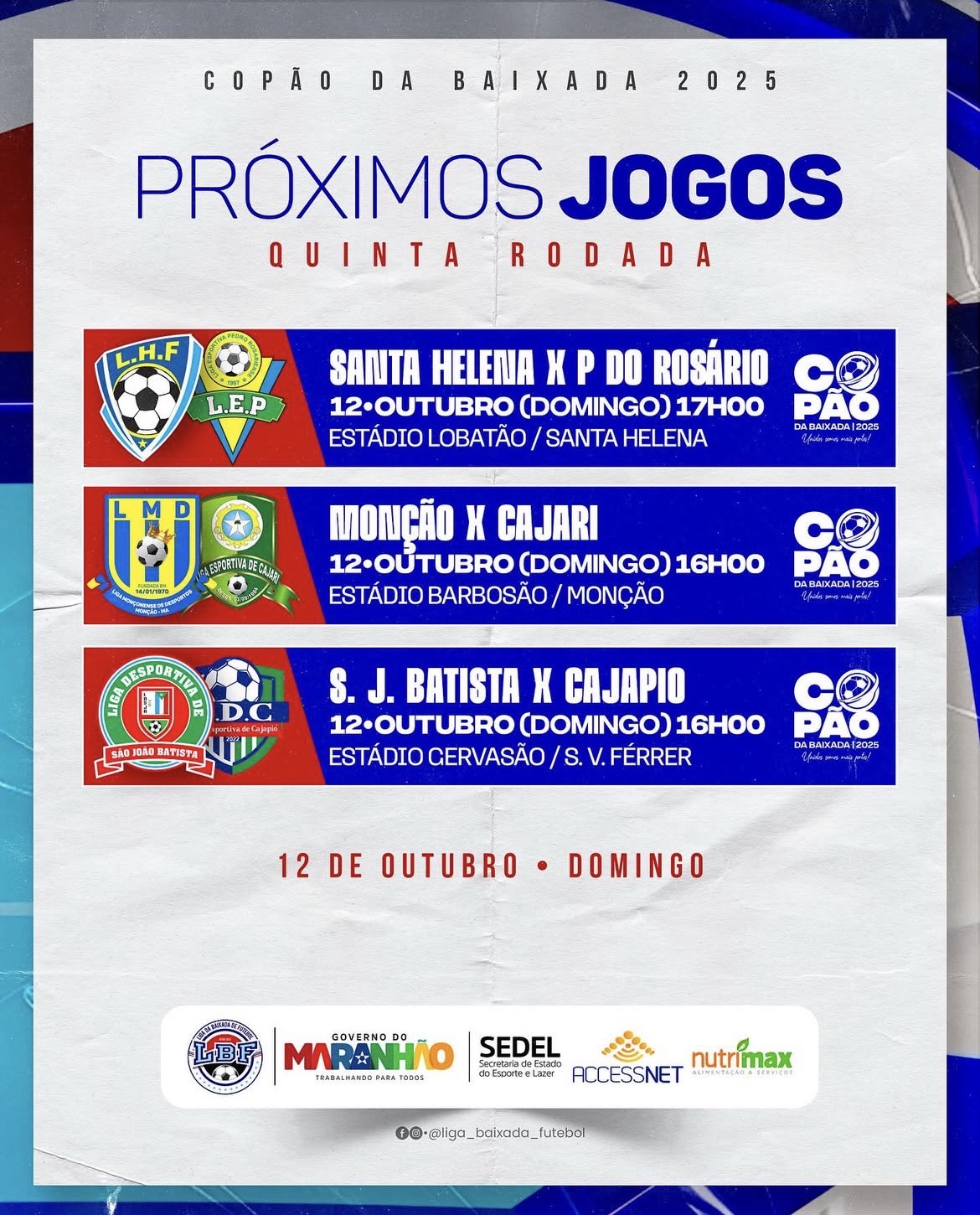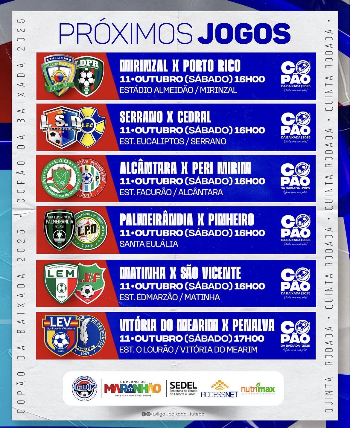 Confira a tabela dos jogos desse final de semana: